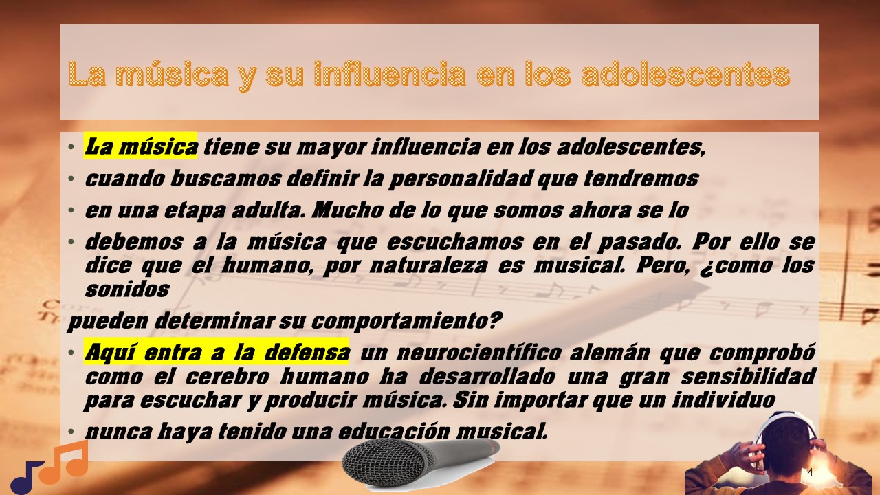 de este modo se dejo en claro en que la música es un lenguaje universal que influye en el proceso de maduración de todos los seres humanos y empieza en la adolescencia.